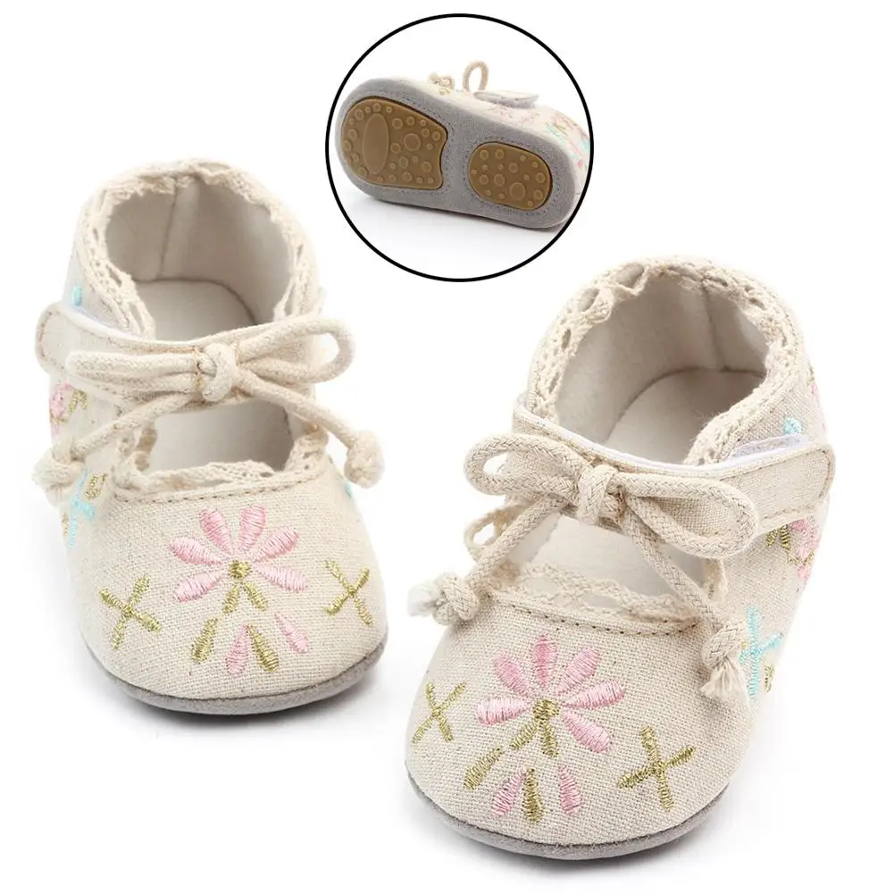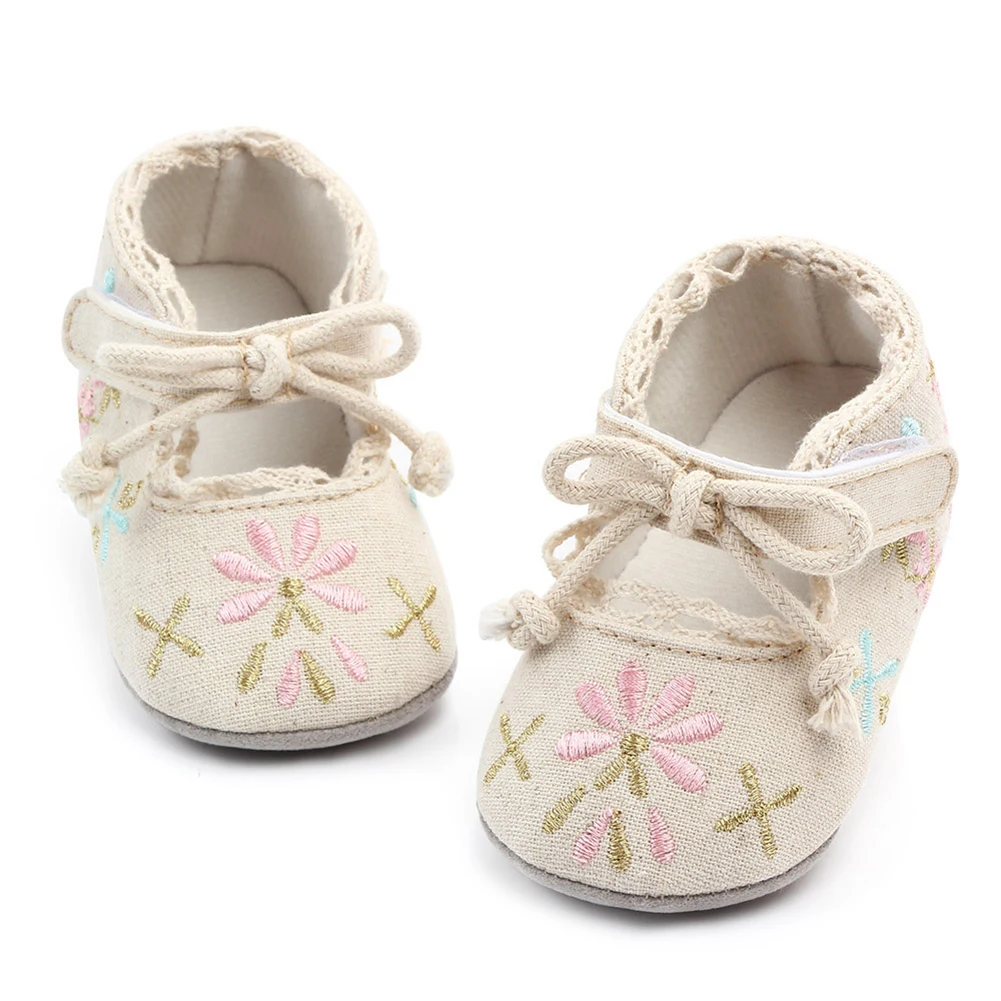 Best Chance of Spring Autumn Newborn Baby Girls Shoes Flower Embroidery Anti-slip Soft Sole Sneakers Prewalker Fla